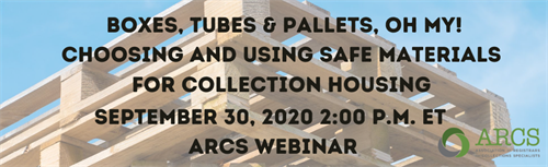 September 8, 2020 | In the PressRegistration Now Open! ARCS Webinar September 30th at 2:00 p.m. EST: Boxes, Tubes & Pallets, Oh My! Choosing and Using Safe Materials for Collection Housing